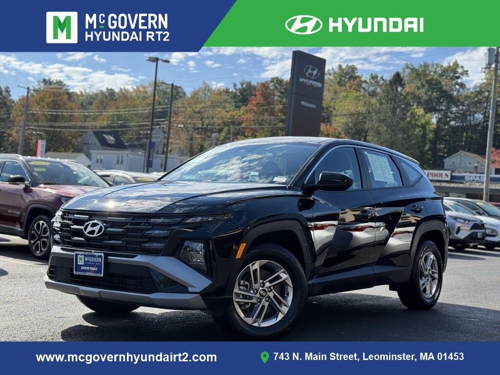 McGovern Hyundai Rt. 2 proudly presents this 2025 Hyundai Tucson SE in Phantom Black. This Hyundai Certified SUV comes with a CARFAX One-Owner history, delivering sleek design, advanced safety, and everyday practicality. Powered by a 2.5L I4 DGI DOHC 16V engine producing 187hp paired with an 8-Speed Automatic with SHIFTRONIC and AWD, its built for confident, efficient driving in all conditions.