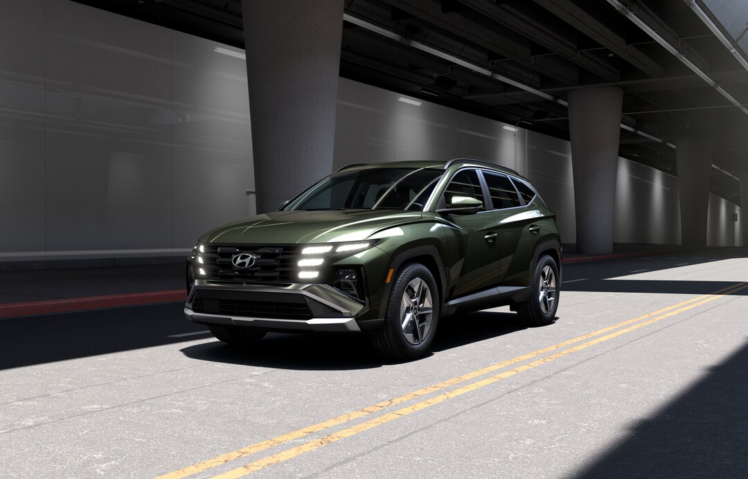 The Tucson Hybrid features a bold and modern design that stands out on the road. Standard LED headlights with automatic high-beam control provide excellent visibility, while the Tucson Hybrid SUV's aerodynamic profile contributes to its impressive fuel efficiency. Available 17-inch, 18-inch, or 19-inch alloy wheels complement the Tucson Hybrid SUV's athletic stance. The power liftgate adds convenience for loading cargo, and the optional roof rack cross rails expand carrying capacity for outdoor adventures.